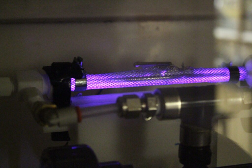 Our system integrates advanced gas injection, controlled cavitation, and energy-assisted activation to generate a high concentration of uniform nanobubbles directly in water.